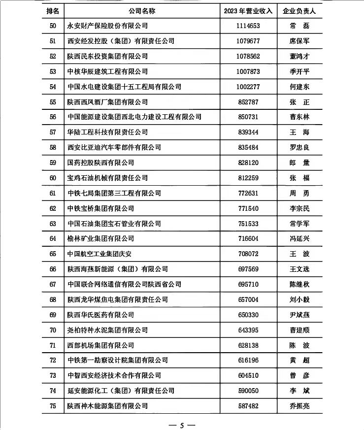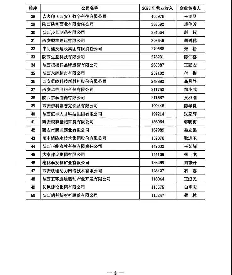附二:2024陜西民營(yíng)企業(yè)50強(qiáng)排序名單